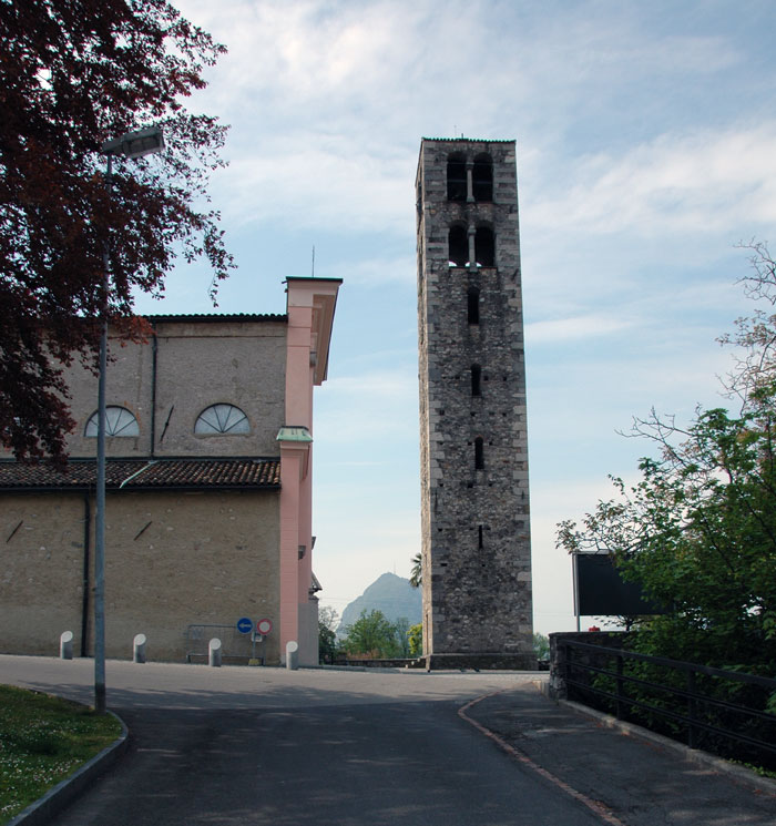 La chiesa di Pazzalino (in rosso sulla cartina) si trova appena sopra il paese di Pregassona. Vicino alla chiesa ci sono alcuni parcheggi (in blu) come pure vicino al capolinea del bus.
